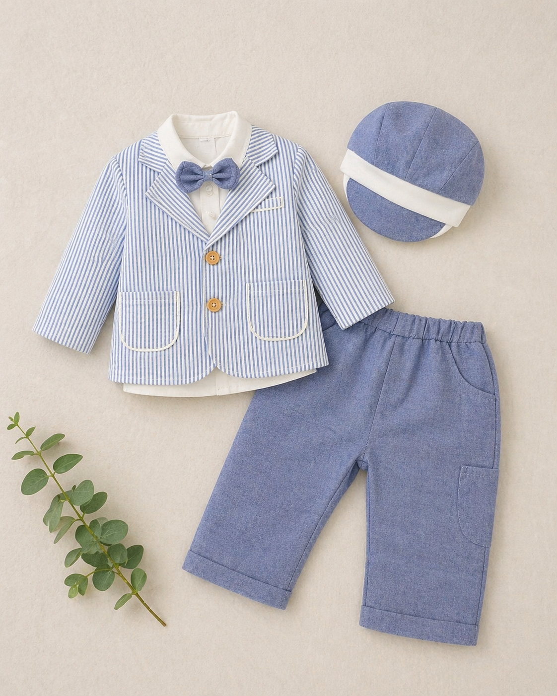 - 4-piece set: blazer, shirt with bow tie, trousers & matching cap