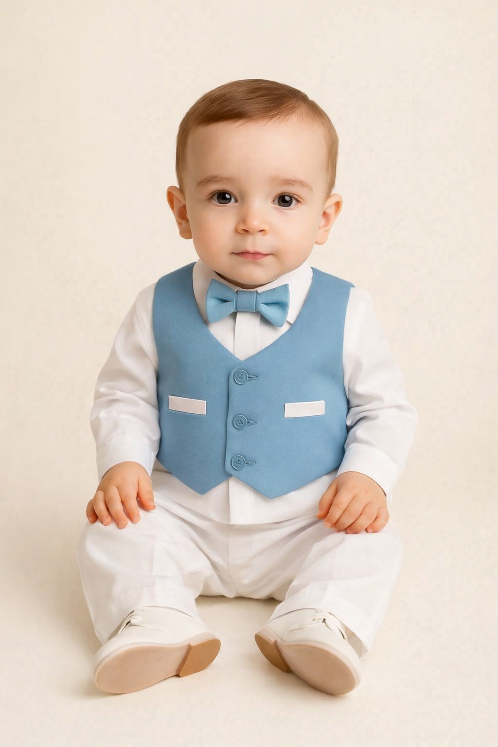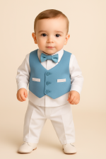 Dress your little gentleman in timeless charm with this beautifully coordinated 4-piece light blue suit set. Designed for weddings, birthdays, christenings, and all special celebrations, this outfit blends classic tailoring with soft, modern tones- perfect for picture-perfect moments.