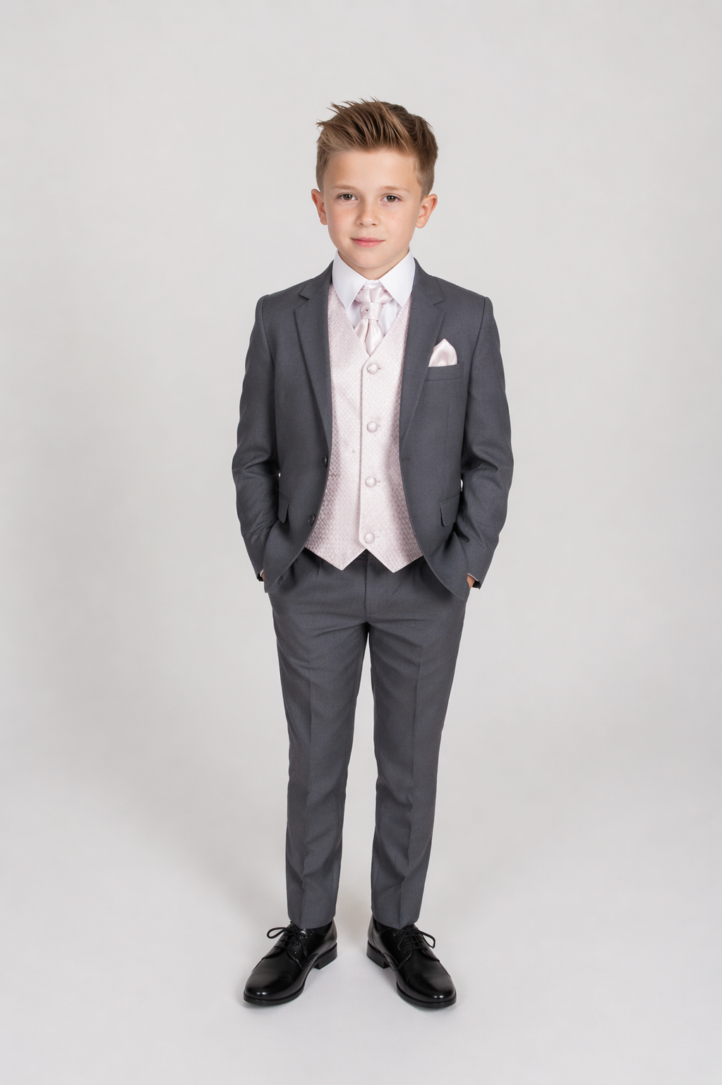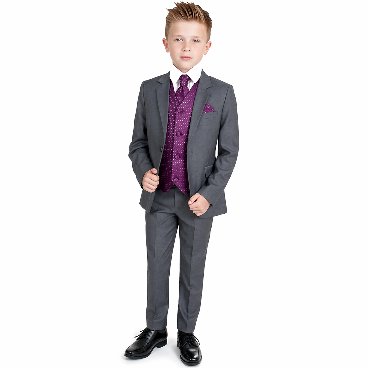 This stylish suit is part of the Vivaki Collection and is perfect for any special occasion!