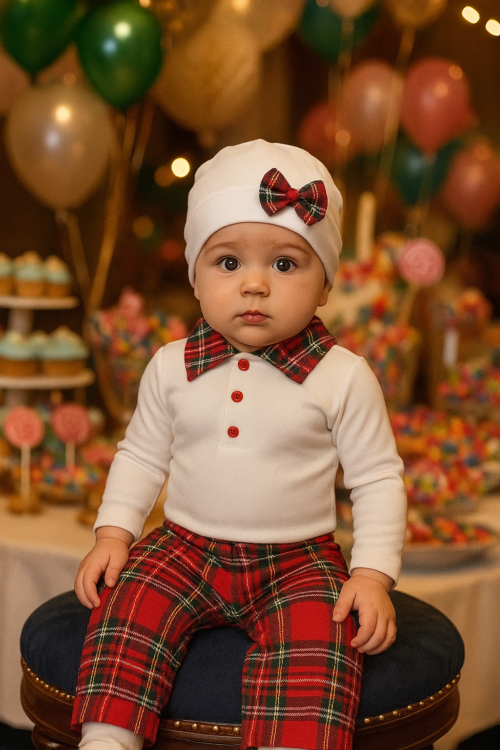 Dress your little one in timeless charm with our Tartan Baby Outfit with Matching Hat – a classic, cozy ensemble perfect for festive occasions, family photos, or special gatherings.