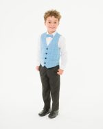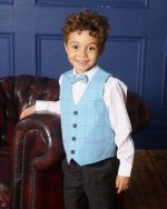 A premium luxury suit by designers Milano Mayfair. This complete 4 piece slim fit suit comes with trousers with adjustable waist, matching 4 button waistcoat, crisp white shirt and a bow tie to complement the suit. Make your little gent look stunning and make every moment memorable with this suit