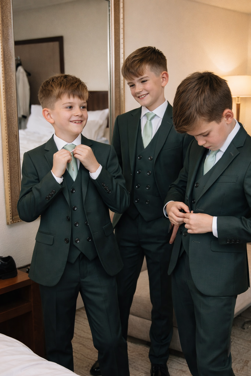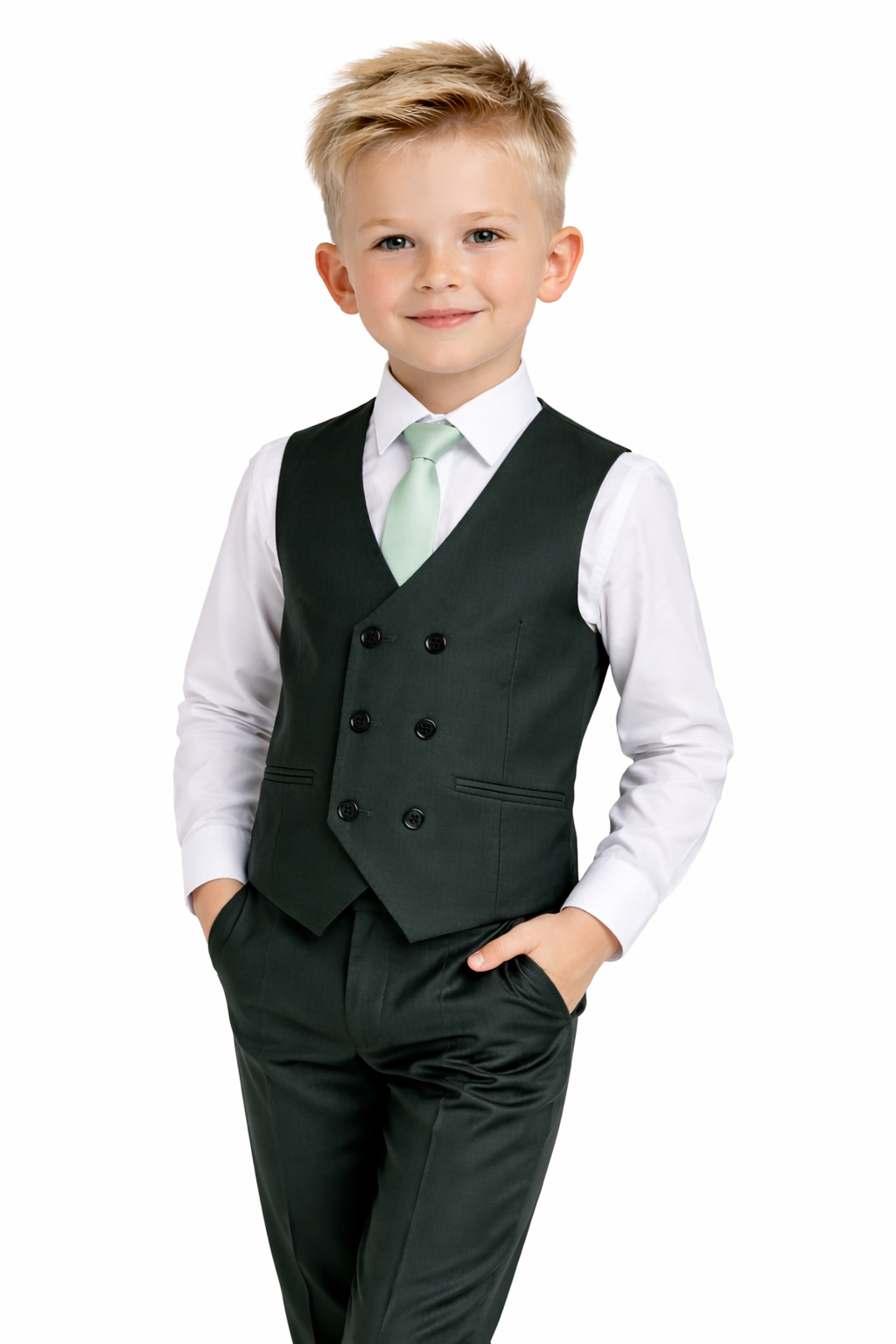 A premium luxury suit by designers Milano mayfair. This complete 5 piece slim fit suit comes with a 2 Button Jacket, trousers with adjustable waist, matching 4 button waistcoat, crisp white shirt and a tie to complement the suit. Make your little gent look stunning and make every moment memorable with this suit.