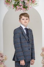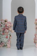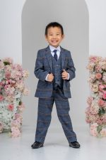 This 5 piece suit is great for all formal occasions. Incredibly eye catching with its blue with orange check design.