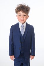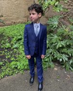 A premium luxury suit by designers Milano Mayfair. This complete 5 piece slim fit suit comes with a 2 Button Jacket, trousers with adjustable waist, matching 4 button waistcoat, crisp white shirt and a tie to complement the suit. Make your little gent look stunning and make every moment memorable with this suit. This premium suit comes in a Milano Mayfair suit bag.