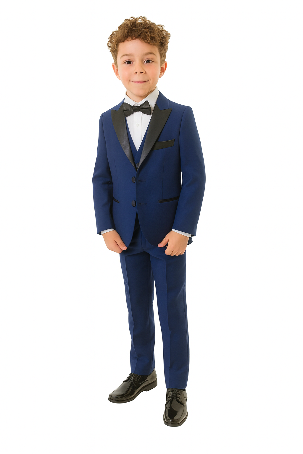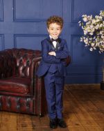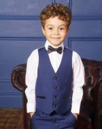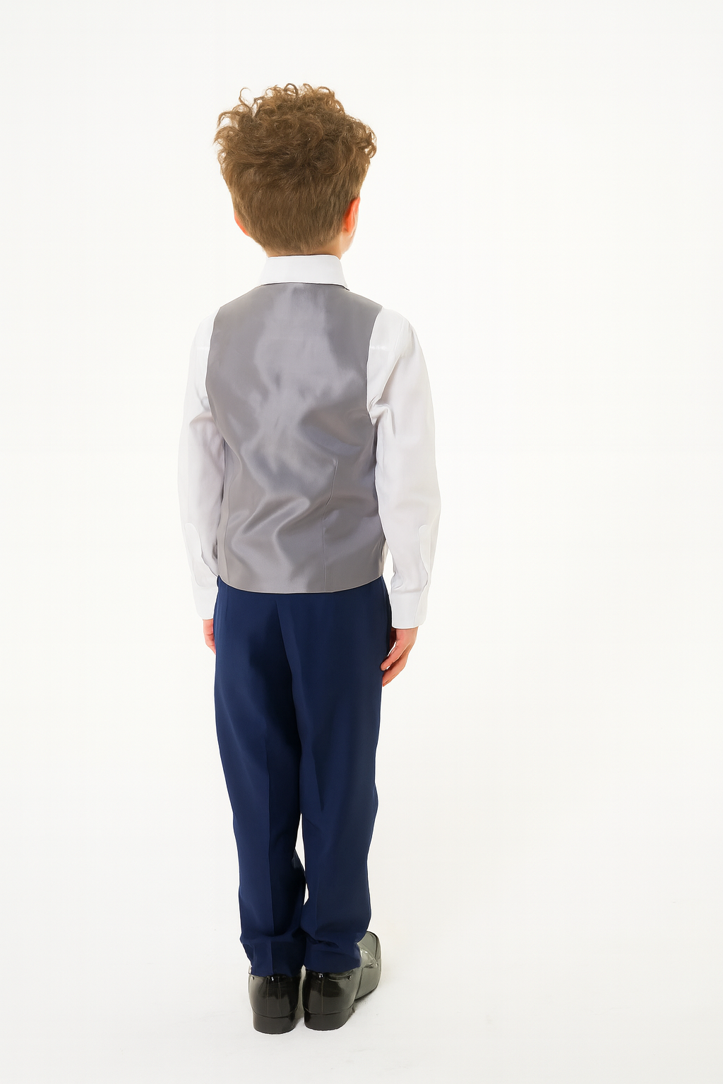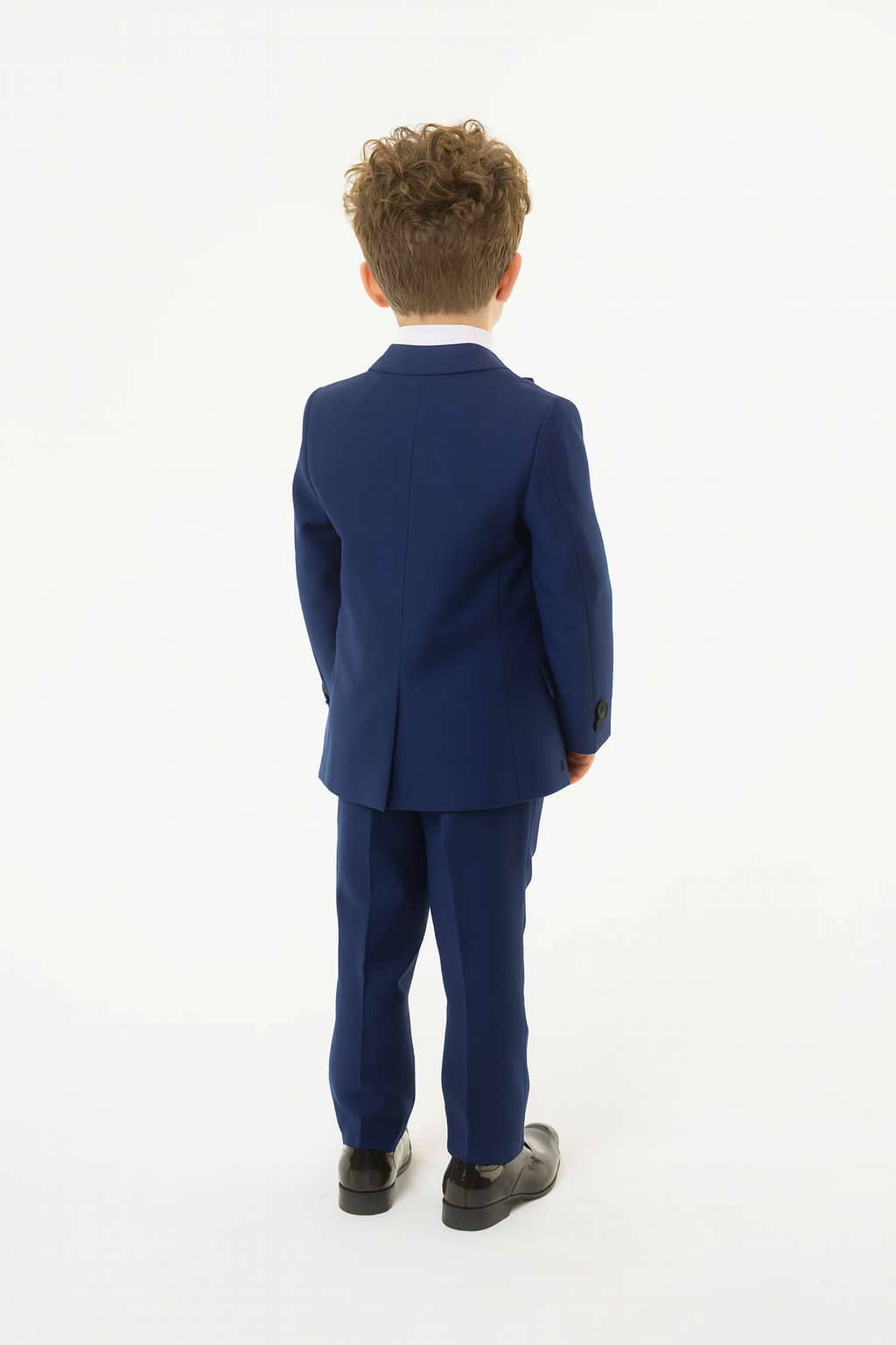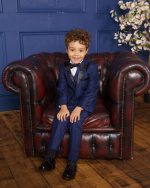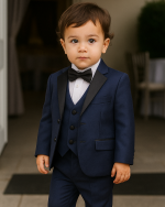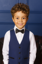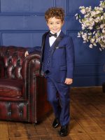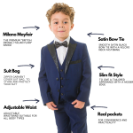 A premium luxury suit by designers Milano Mayfair. This complete 5 piece slim fit suit comes with a 2 Button Jacket, trousers with adjustable waist, matching 4 button waistcoat, crisp white shirt and a bow tie to complement the suit. Make your little gent look stunning and make every moment memorable with this suit. This premium suit comes in a Milano Mayfair suit bag.