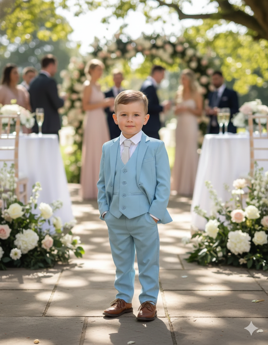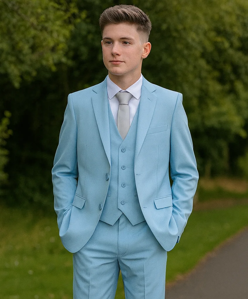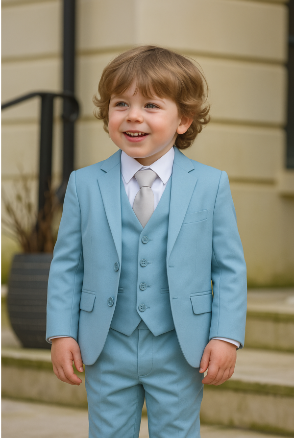 Introducing our affordable yet dapper Sky Blue Romario Boys Suit, designed to bring a touch of sophistication to any young gentleman’s wardrobe without breaking the bank. Crafted with attention to detail and quality materials, this suit offers a smart and polished look for various occasions.
