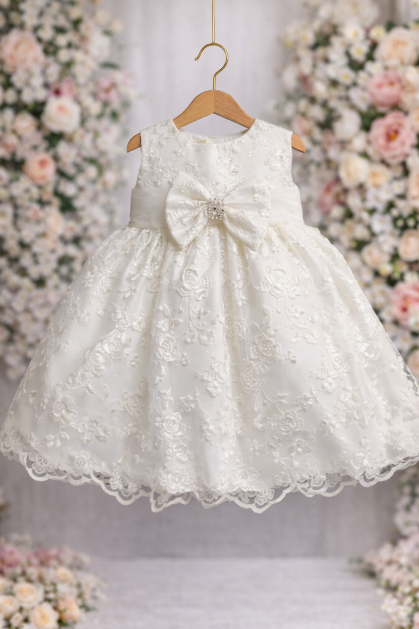 - Bodice: A delicate floral lace design on the bodice creates an elegant and sophisticated look.