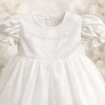 - Overall Look: This stunning ivory gown is both timeless and sophisticated, making it the perfect choice for a baby girl’s Christening day.