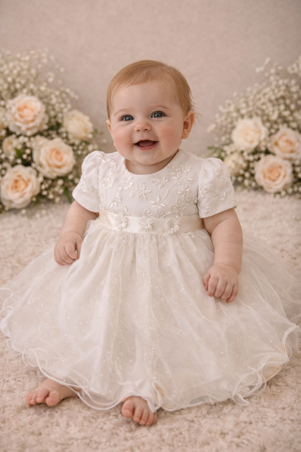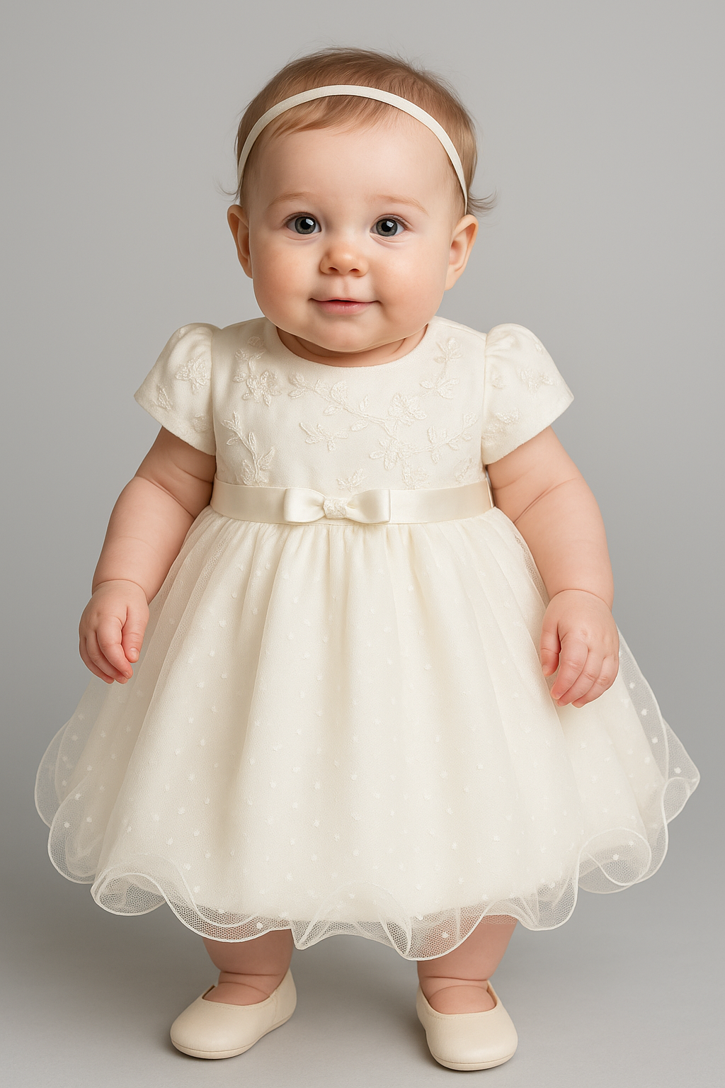 - Skirt: Layers of soft tulle create a beautiful, flowing silhouette, perfect for christenings and special occasions.