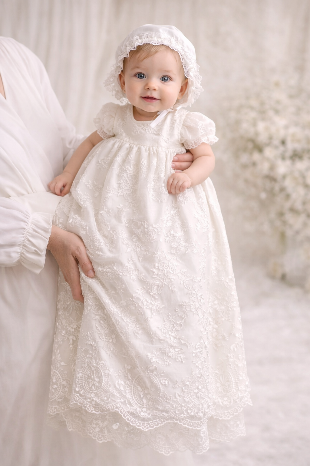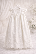- Bonnet: A matching ivory bonnet is included, completing the christening ensemble with a beautifully coordinated finish.