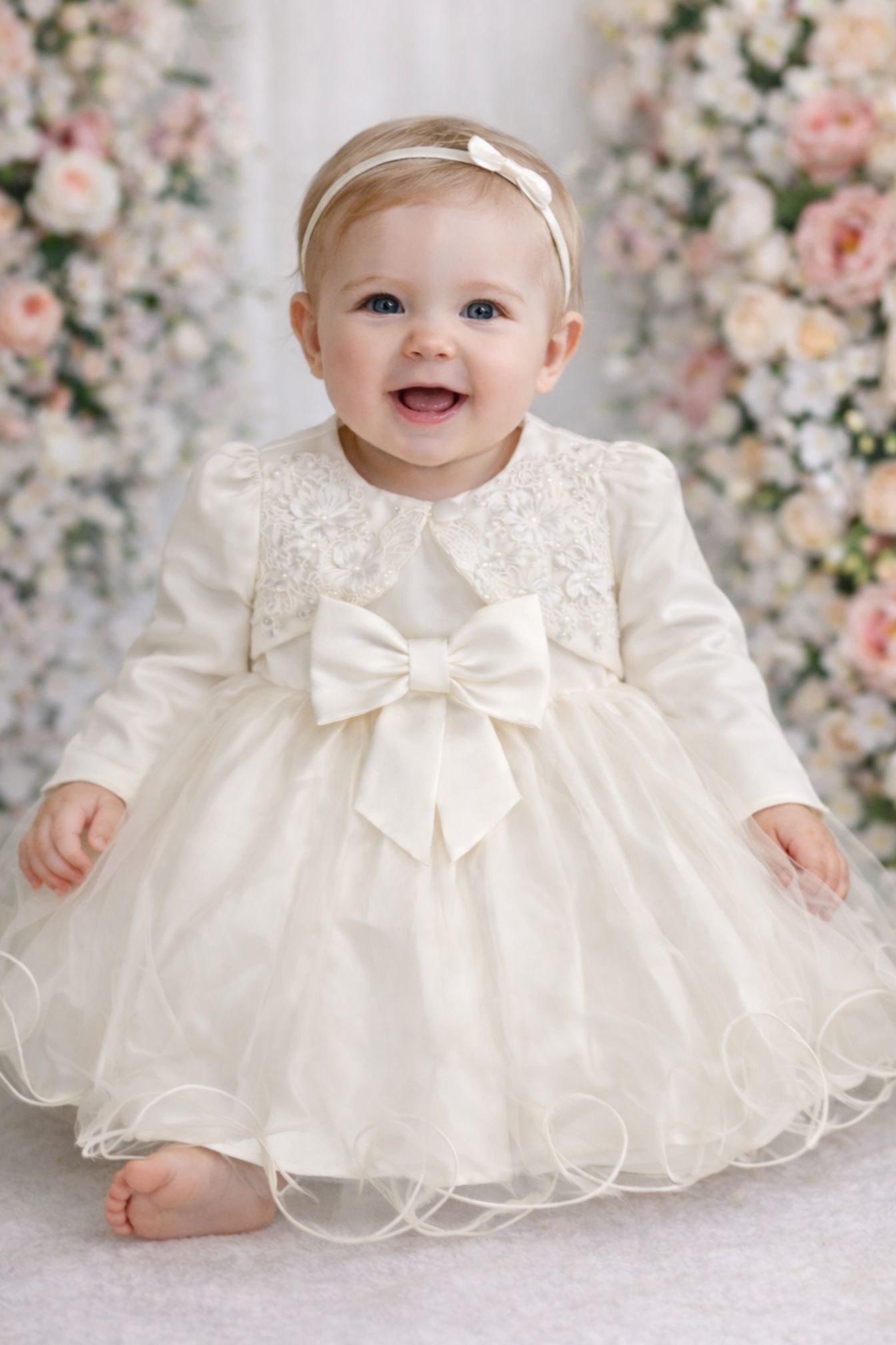 - Bodice: Elegant and minimal with delicate detailing, perfect for a christening.