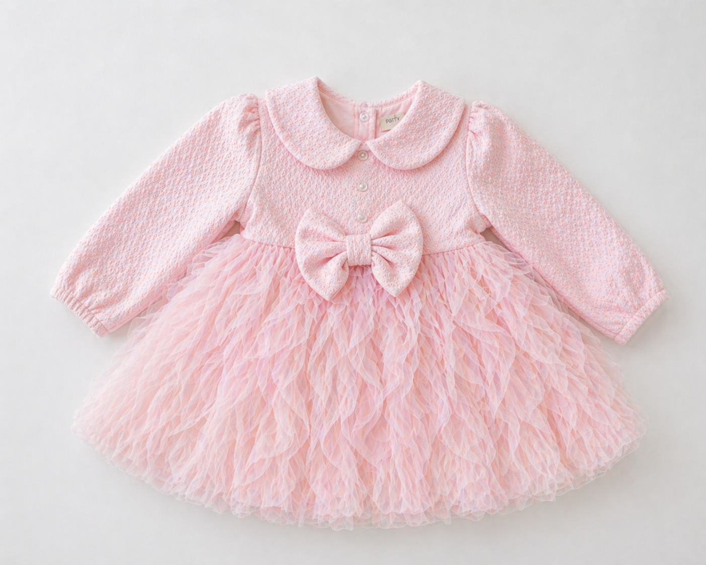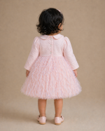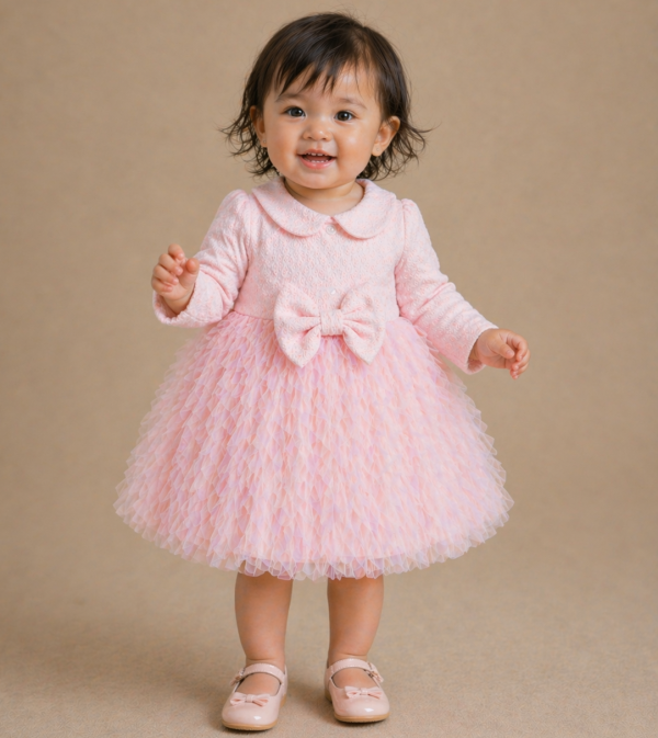A beautifully soft and elegant pink baby dress, perfect for special occasions and everyday moments alike. Designed with a delicate textured knit bodice, this dress offers both comfort and a timeless look, while the layered tulle skirt adds a lovely full shape with gentle movement.