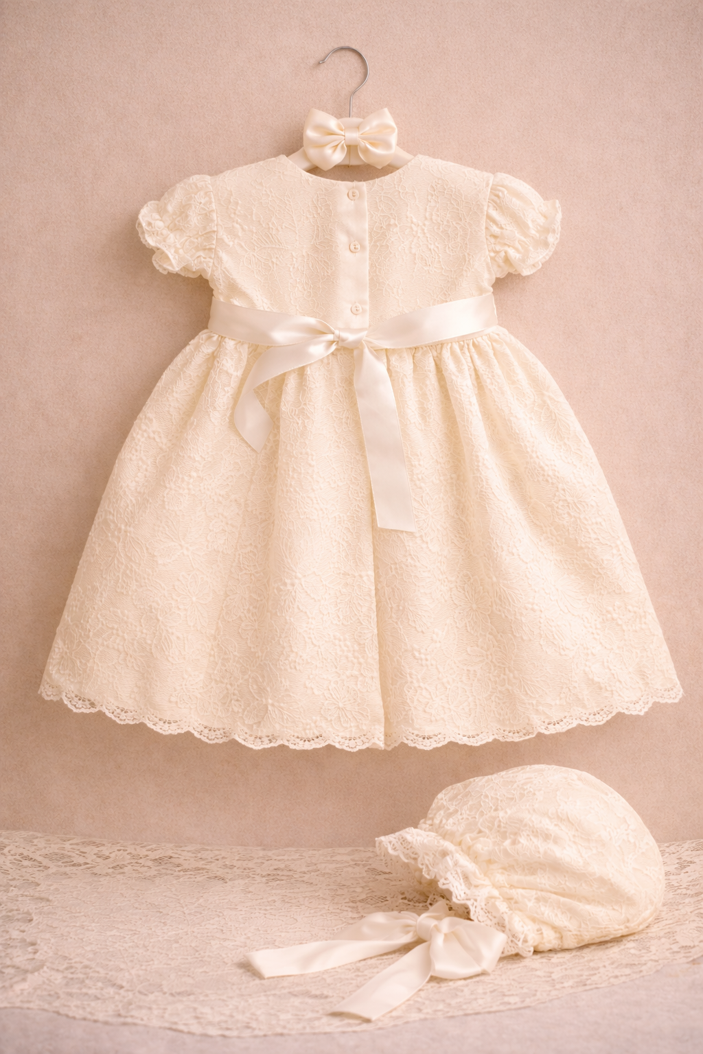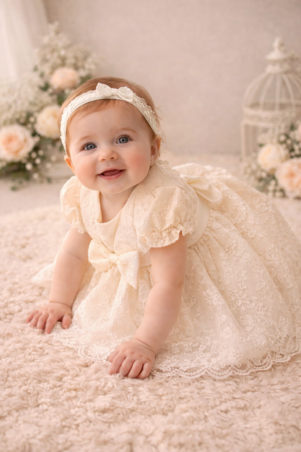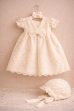 - Overall Look: This dress’s combination of puffed sleeves, floral embroidery, and a bow at the waist makes it a perfect, elegant choice for christenings, baptisms, or other formal ceremonies.