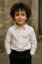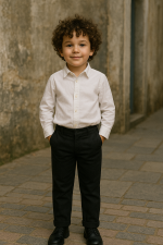 This wonderfully styled 2 piece suit it includes black trousers and white shirt only. This set is perfect for those looking for a casual set. This is perfect for any formal occasion or wedding to make your little boy stand out with class and elegance. Black trousers and white shirt only.