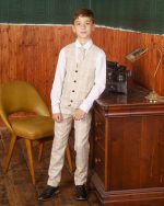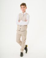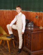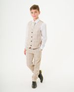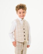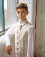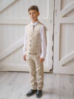 A premium luxury suit by designers Milano Mayfair. This complete 4 piece slim fit suit comes with trousers with adjustable waist, matching 4 button waistcoat, crisp white shirt and a tie to complement the suit. Make your little gent look stunning and make every moment memorable with this suit. This premium suit comes in a Milano Mayfair suit bag.