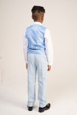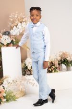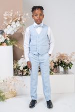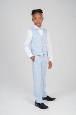 Boys 4 Piece Check Suit in Blue