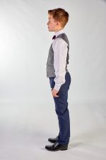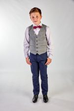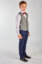 This wonderfully styled suit is the perfect suit for those looking for a modern 4 Piece suit. This check style suit is a 4 piece suit and comes with a finely crafted waistcoat, Navy trousers, a White shirt and a stylish Burgundy bow tie. Well stitched and high quality material, this suit is ideal for any special occasion.