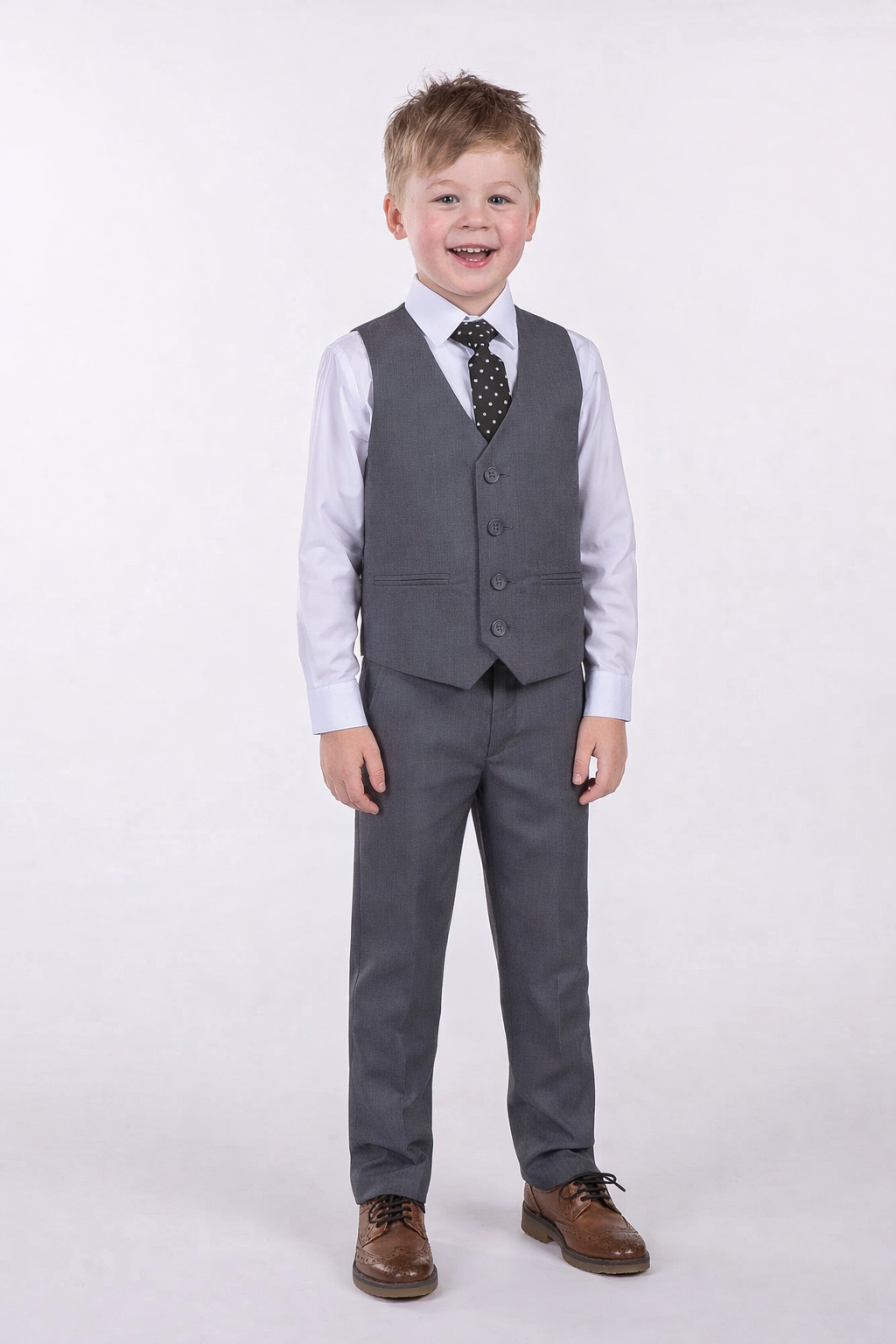 Introducing our affordable yet dapper 4pc grey Romario Boys Suit, designed to bring a touch of sophistication to any young gentleman’s wardrobe without breaking the bank. Crafted with attention to detail and quality materials, this suit offers a smart and polished look for various occasions.
