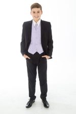 This 5 Piece Swirl suit is great for all formal occasions and in the highly popular combination of black with Lilac , your boy will stand out in the crowd.