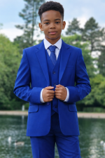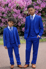 Introducing our affordable yet dapper electric blue Romario Boys Suit, designed to bring a touch of sophistication to any young gentleman’s wardrobe without breaking the bank. Crafted with attention to detail and quality materials, this suit offers a smart and polished look for various occasions.