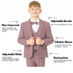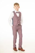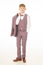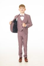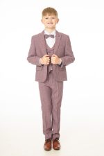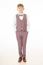 This boys full 5 piece suit comes complete with jacket, shirt, waistcoat, trousers and bow tie