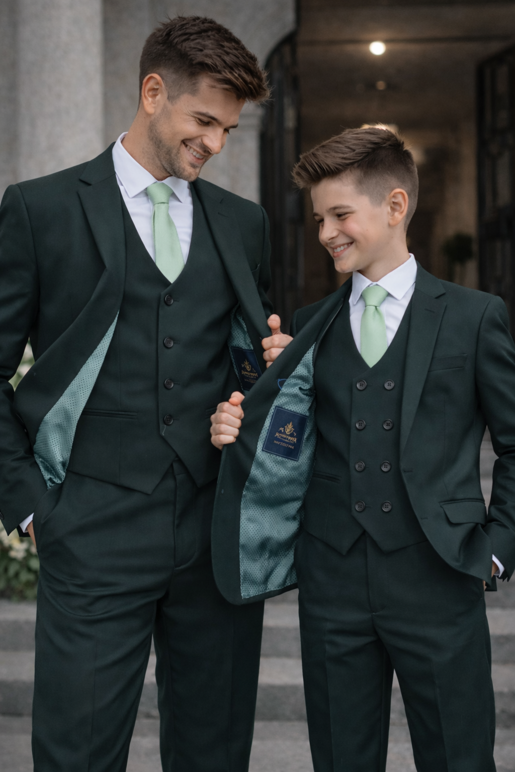 A premium luxury suit by designers Milano mayfair. This complete 5 piece slim fit suit comes with a 2 Button Jacket, trousers with adjustable waist, matching 4 button waistcoat, crisp white shirt and a tie to complement the suit. Make your little gent look stunning and make every moment memorable with this suit.