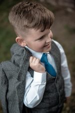 This herringbone style suit is a 5 piece suit and comes with a finely crafted tweed blazer and waistcoat, tweed trousers, a white shirt and a blue tie to finish off this smart look. Well stitched and made using high quality material. With the upcoming trends of herringbone tweed, this suit is sure to have your boy dazzling any occasion