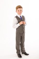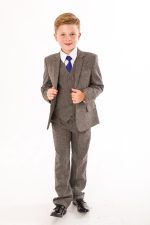 Boys 5 Piece Grey Herringbone Tweed Suit