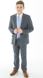 This 5 Piece Swirl suit is great for all formal occasions and in the highly popular combination of Grey with Blue , your boy will stand out in the crowd.