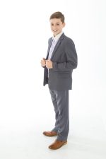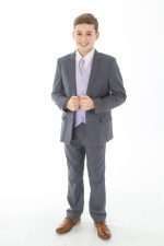 This 5 Piece Swirl suit is great for all formal occasions and in the highly popular combination of Grey with Lilac , your boy will stand out in the crowd.