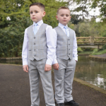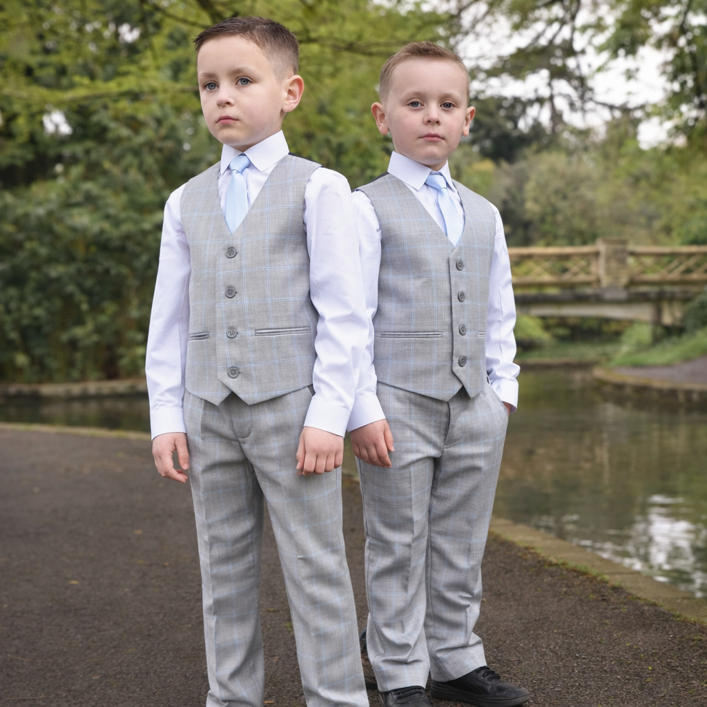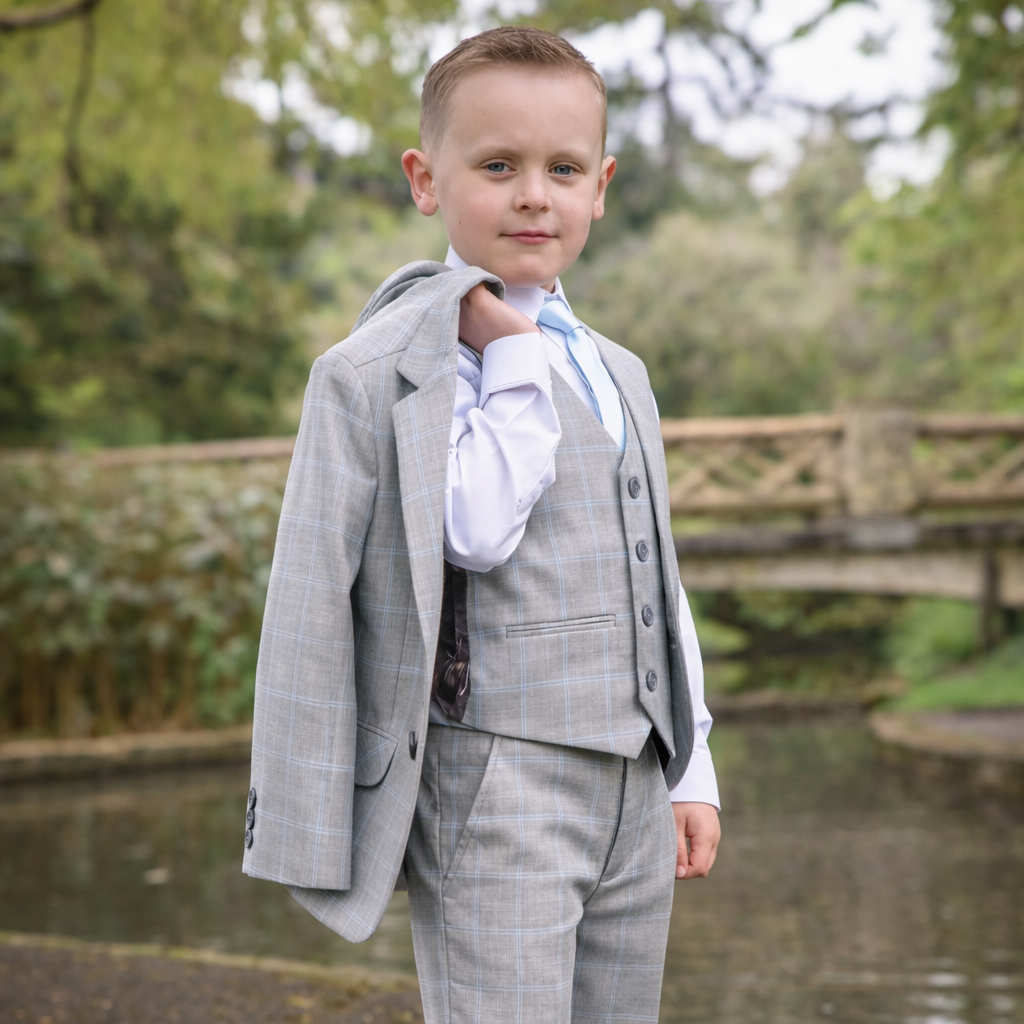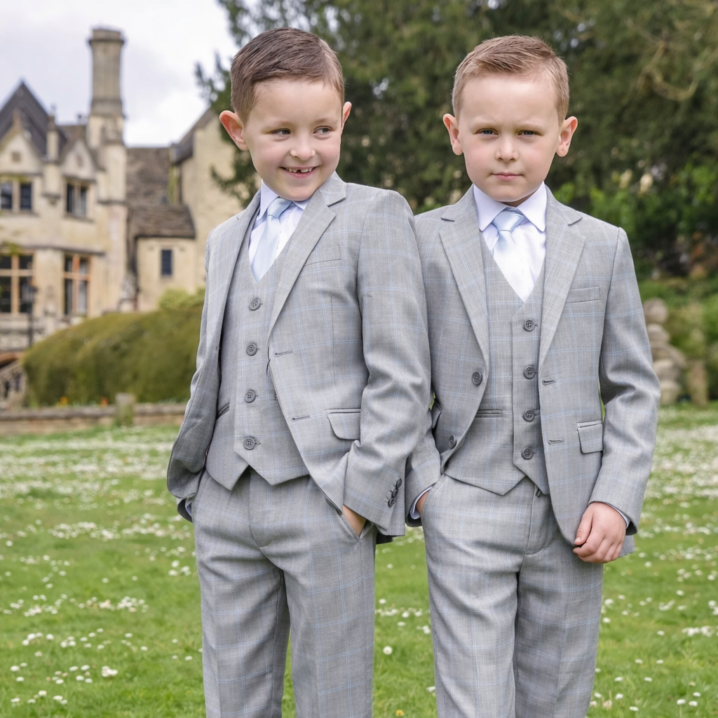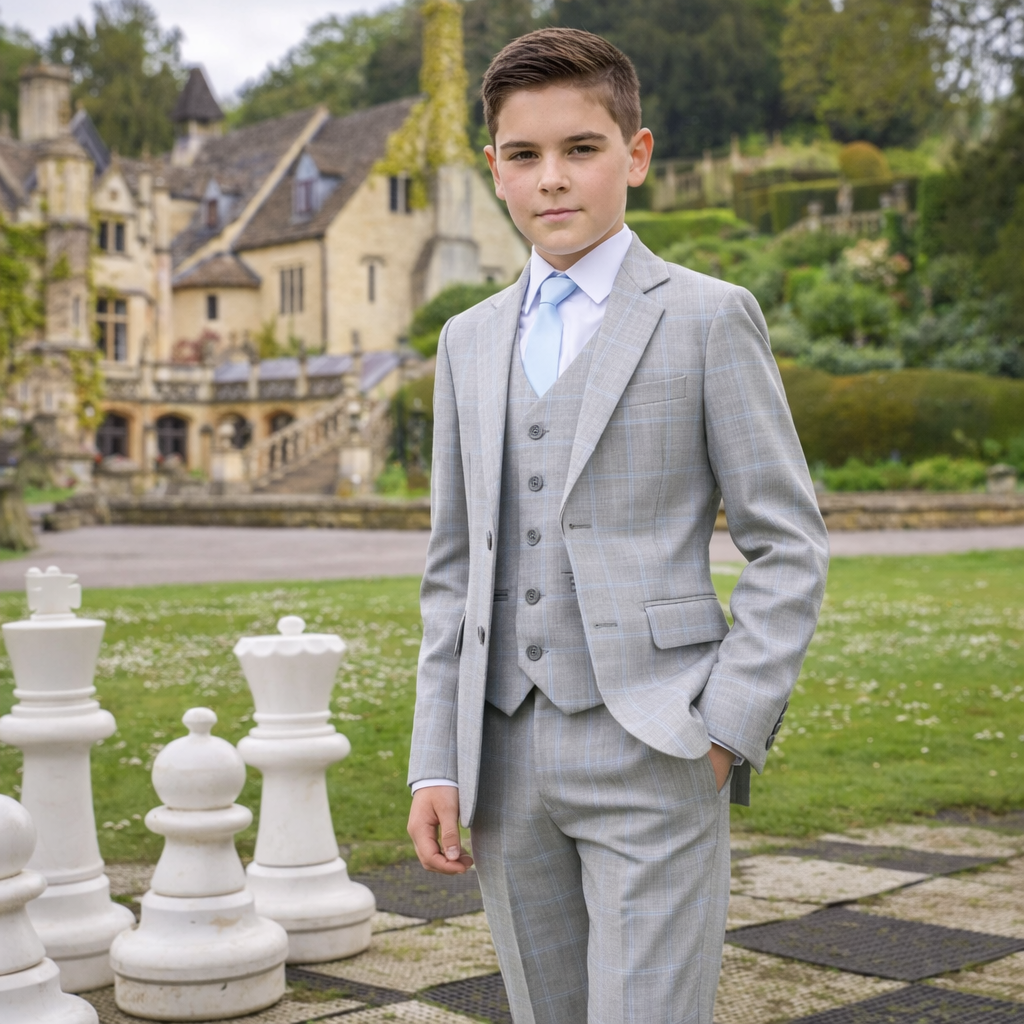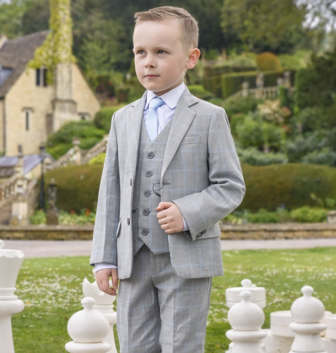 Baby Boys 5 Piece Grey with Blue Check Suit