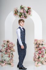 This 5-piece suit is perfect for weddings and special events, combining comfort and sophistication for your young gentleman. Crafted for both comfort and sophistication, this tailored ensemble ensures your young gentleman looks sharp and polished.