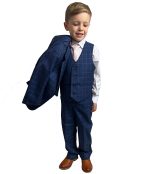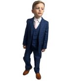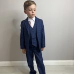 Lockdown the look in this super stylish Navy check suit. The crisp white shirt and light pink tie contrast flawlessly with the rich navy suit colouring. Creating the perfect stand out outfit.