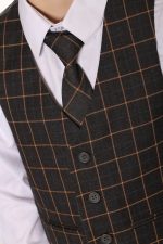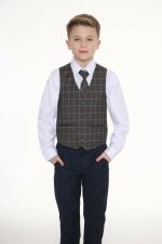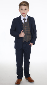 This Stylish navy suit is incredibly eye catching with its Chequered Waistcoat and matching tie. The design of the waistcoat has various lines of White and Grey which makes this waistcoat the dominant piece of the suit. Subtle hints of grey running throughout the pattern compliment the navy jacket and trousers. The whole suit is finished off with a crisp white shirt