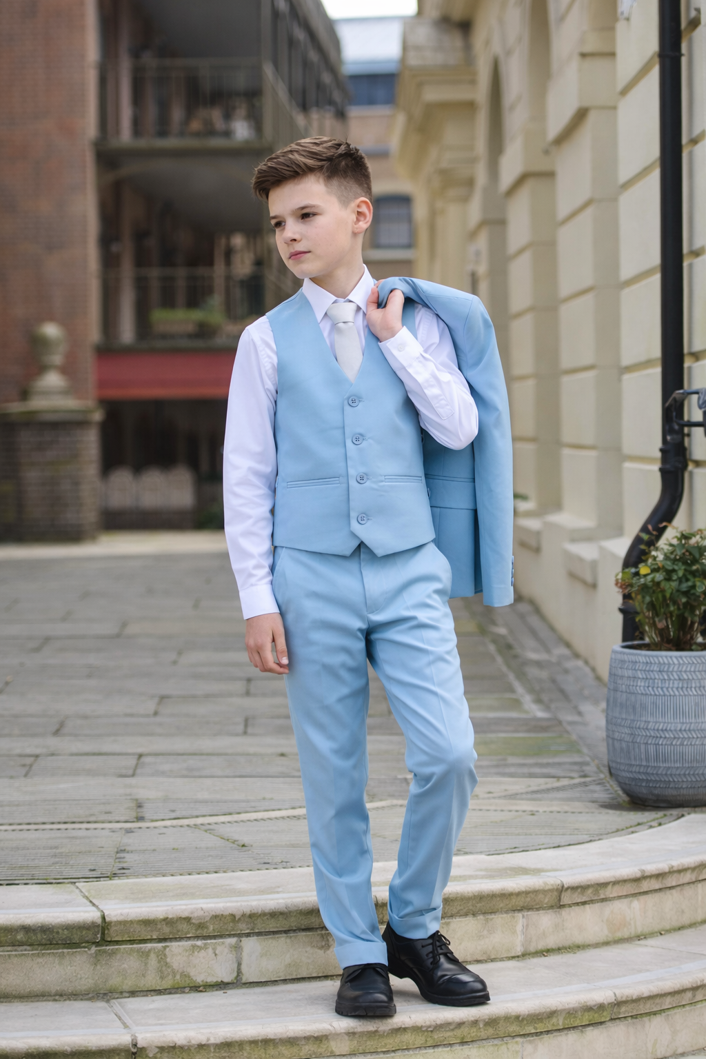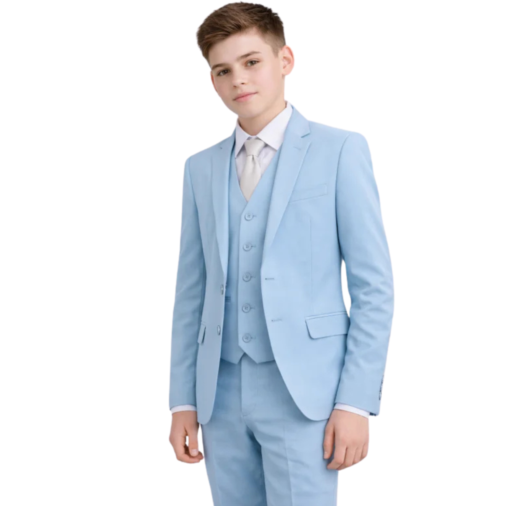 Introducing our affordable yet dapper Sky Blue Romario Boys Suit, designed to bring a touch of sophistication to any young gentleman’s wardrobe without breaking the bank. Crafted with attention to detail and quality materials, this suit offers a smart and polished look for various occasions.