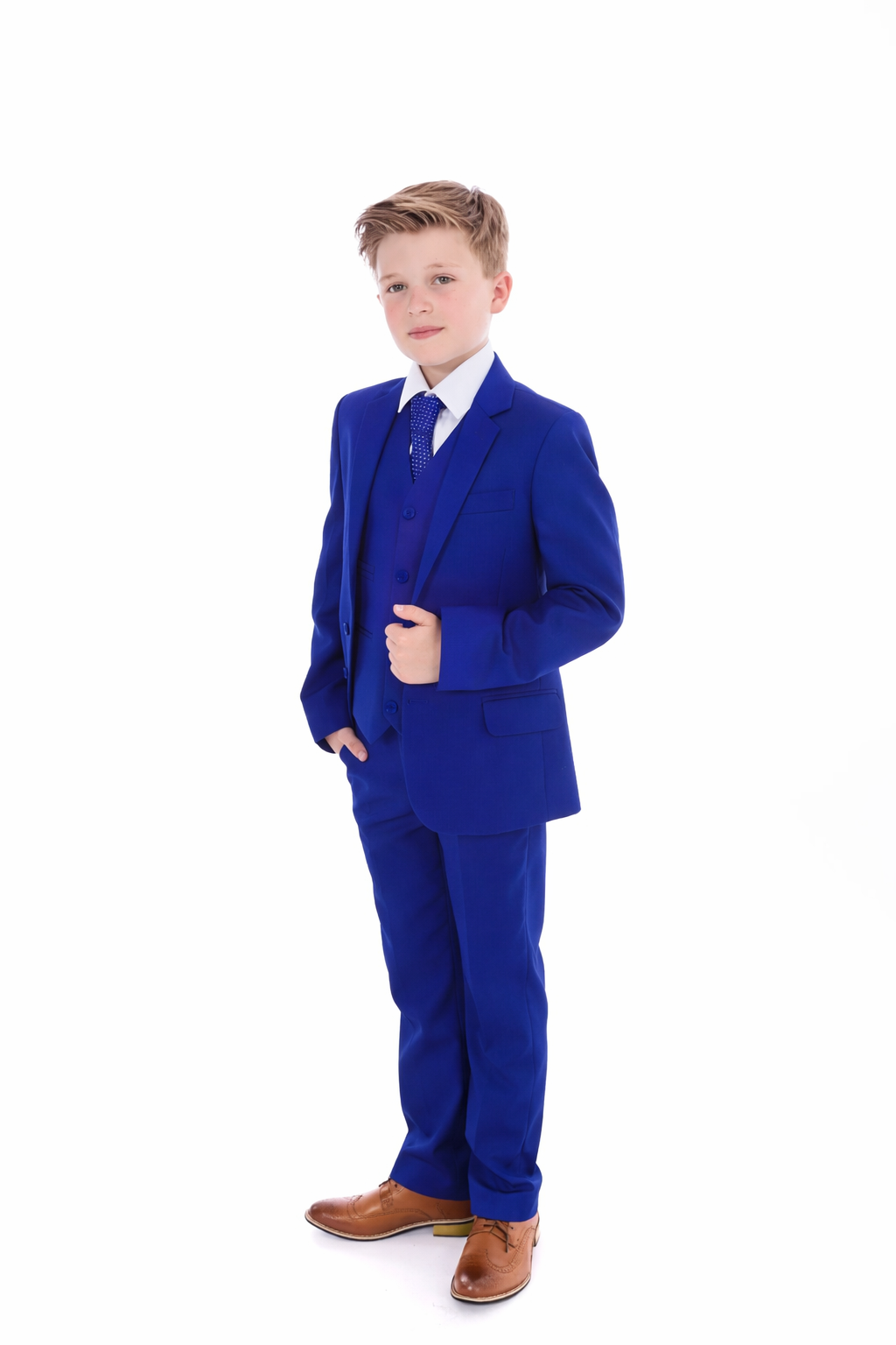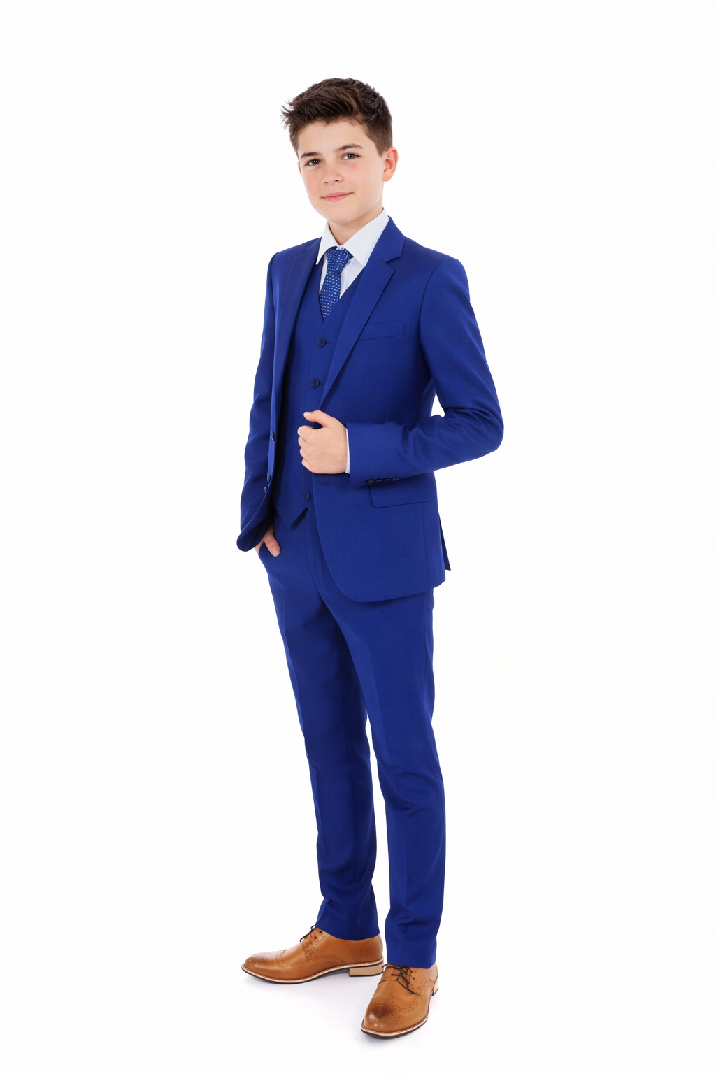 This 5 piece Electric Blue suit is perfect for any formal or special occasion and will never go out of fashion.