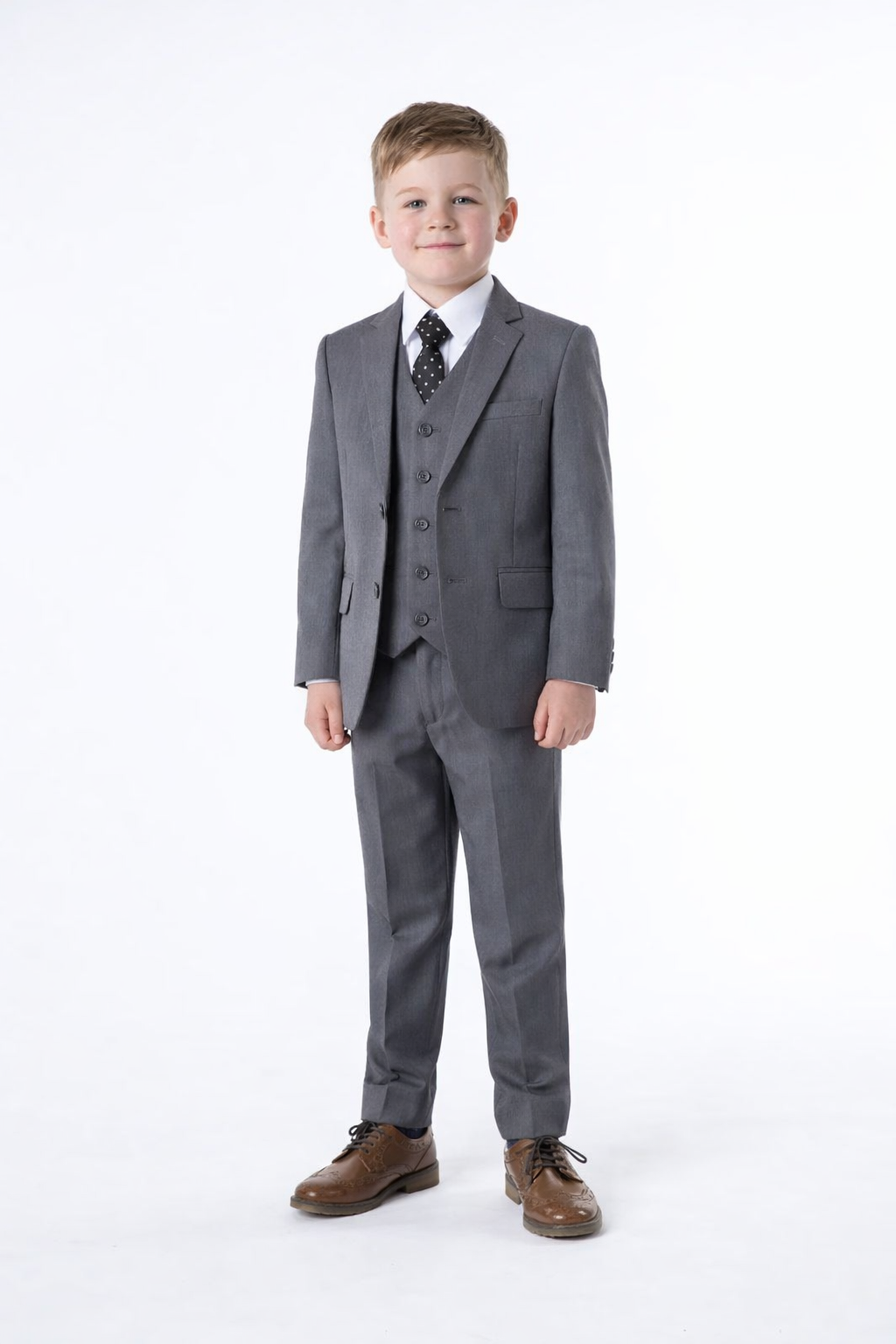 - a matching fully lined grey waistcoat with an adjustable clasp for sizing,