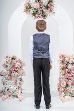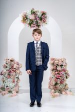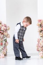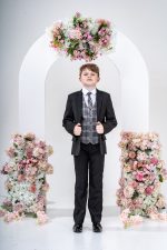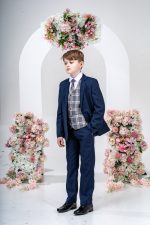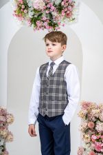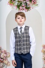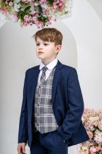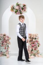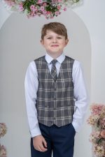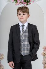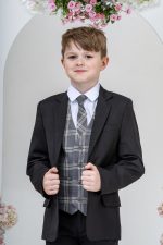 This stylish suit is part of the Vivaki Collection, with it’s incredibly eye catching dark grey check waistcoat and matching tie, makes it perfect for any special occasion!