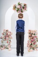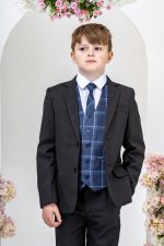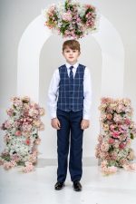 This stylish suit is part of the Vivaki Collection, with it’s incredibly eye catching navy check waistcoat and matching tie, makes it perfect for any special occasion!