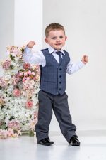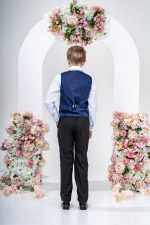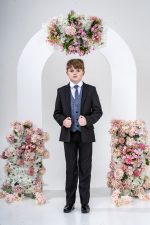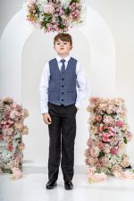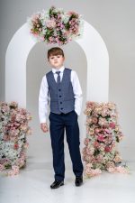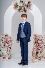 This stylish suit is part of the Vivaki Collection, with it’s incredibly eye catching navy check waistcoat and matching tie, makes it perfect for any special occasion!