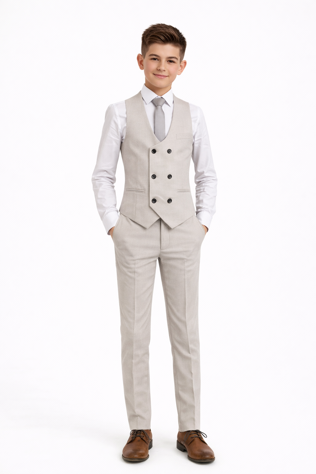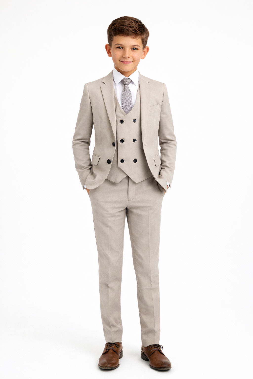 Boys 5 Piece Taupe Suit Milano Mayfair