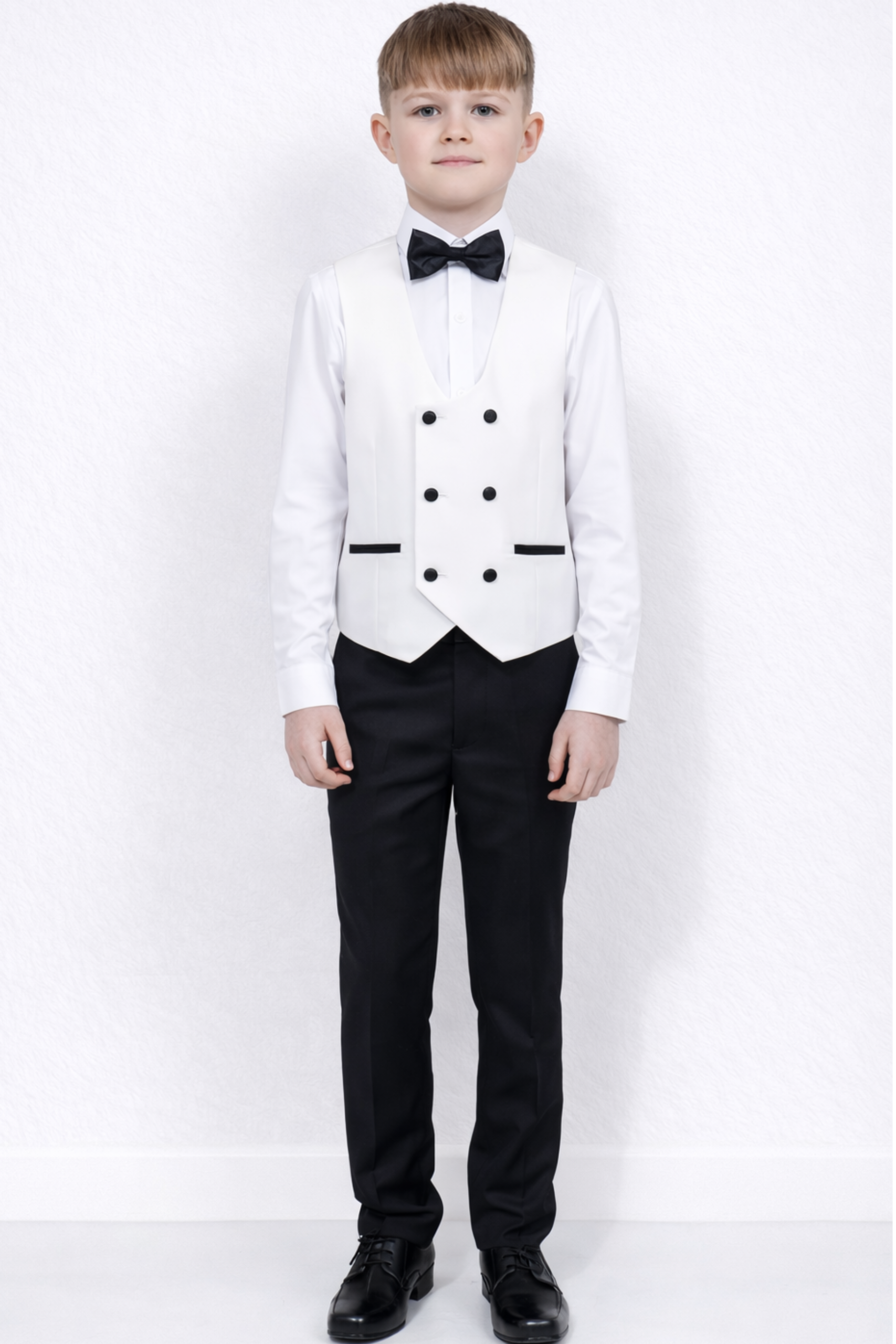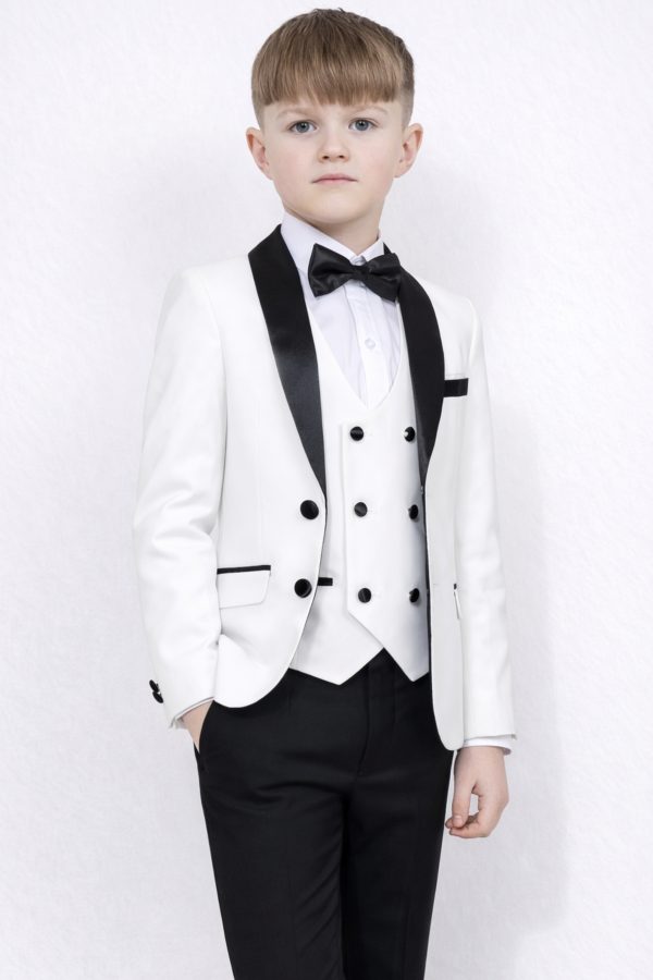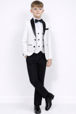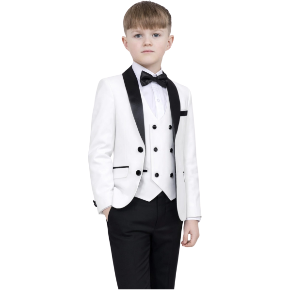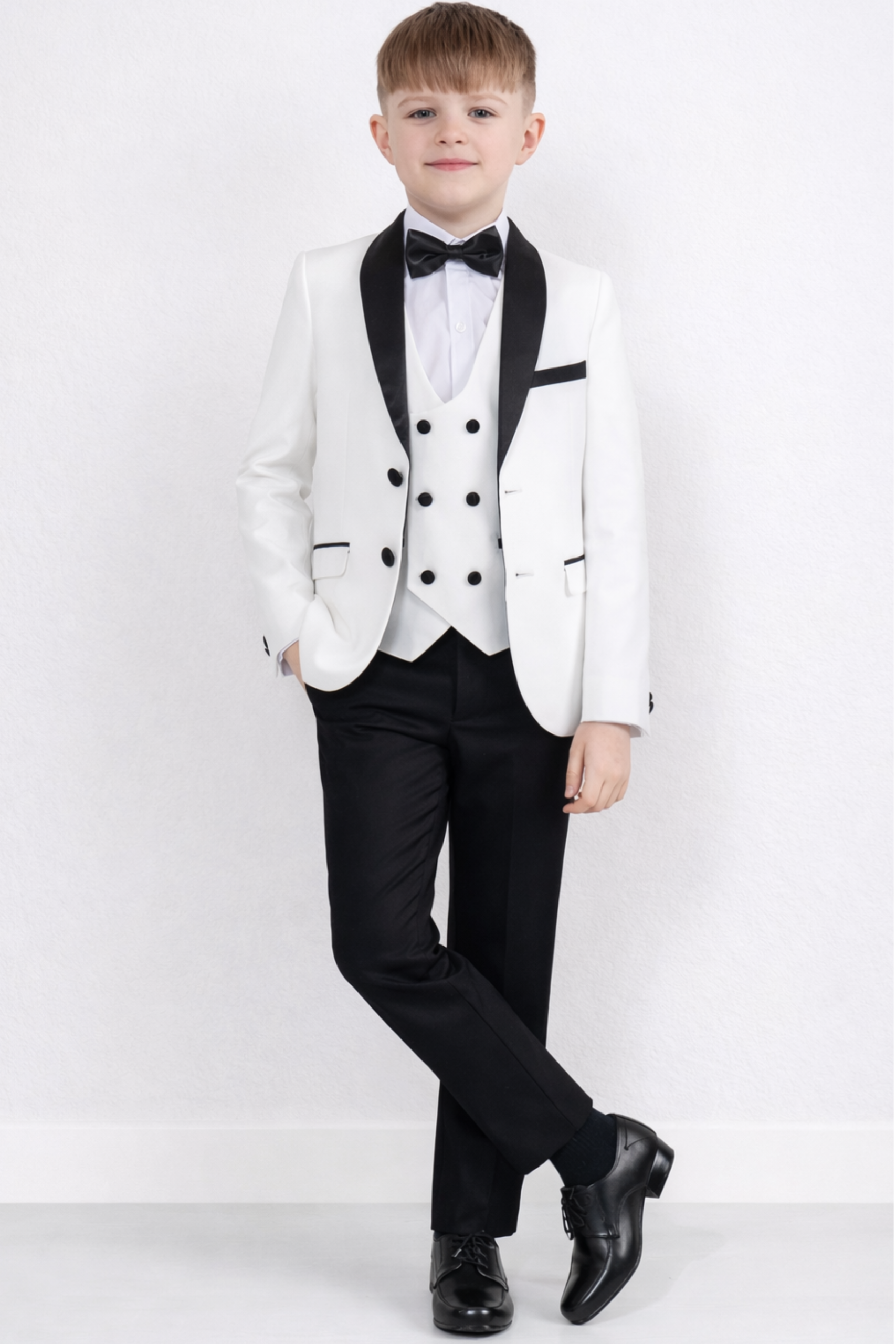 Boys 5 Piece White/Black Tuxedo Suit Milano Mayfair
