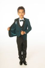 Boys 5 Piece Emerald Green Glitter Tuxedo Suit
