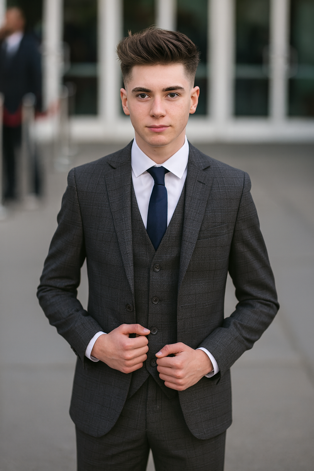 This 5 piece grey check suit is perfect for any formal or special occasion. The stunning check details set this suit apart and and are sure to bring compliments. A complete 5 piece set, this suit is the most popular choice for those looking for a check suit