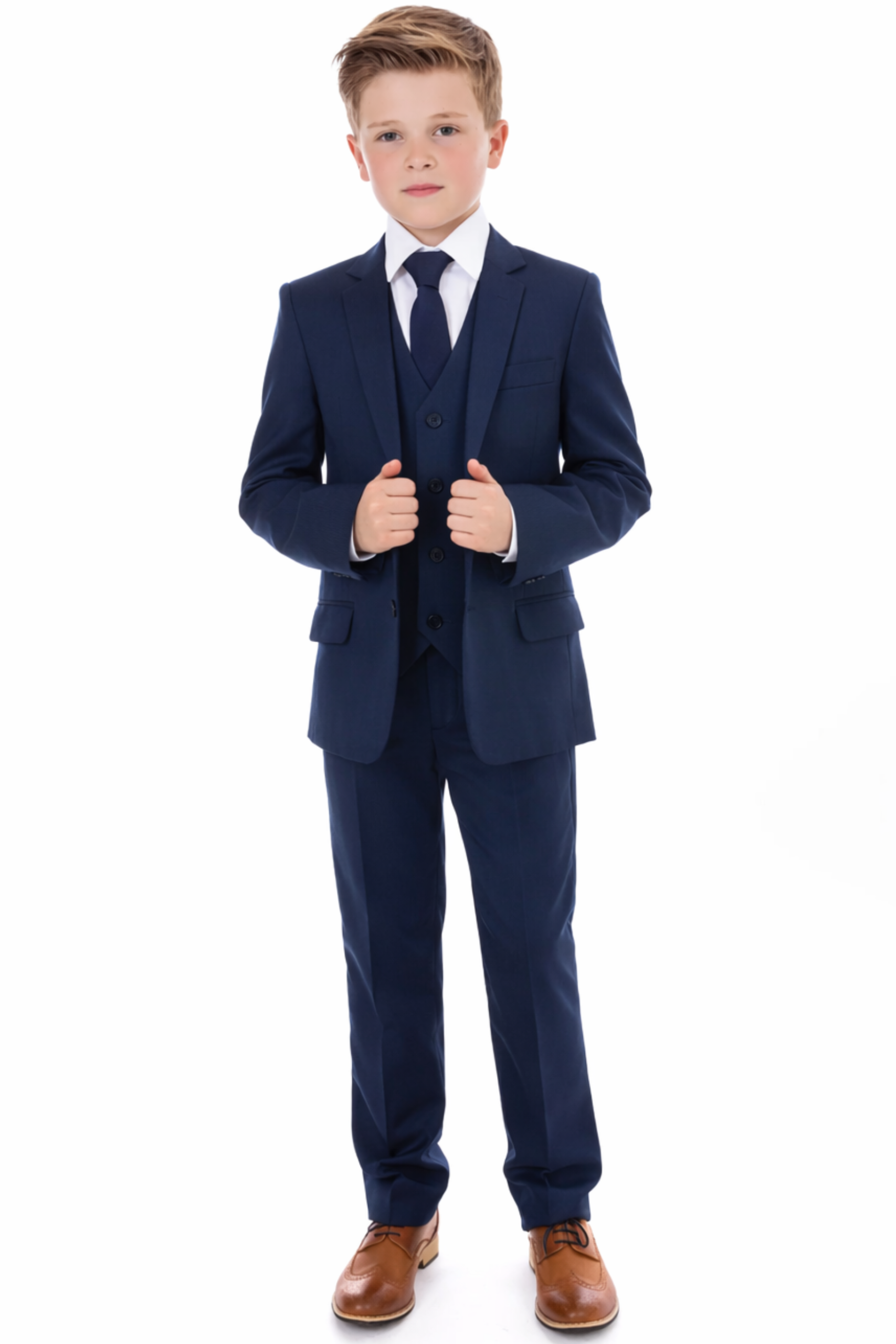 This 5 piece navy check suit is perfect for any formal or special occasion. The stunning check details set this suit apart and and are sure to bring compliments. A complete 5 piece set, this suit is the most popular choice for those looking for a check suit