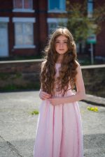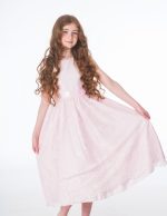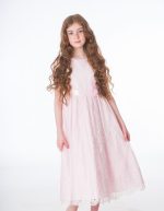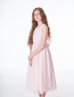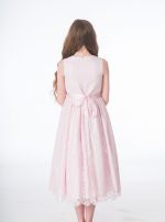 - Bodice & Skirt: Features a delicate hand-crafted lace design throughout in a soft pink shade, adding timeless elegance.