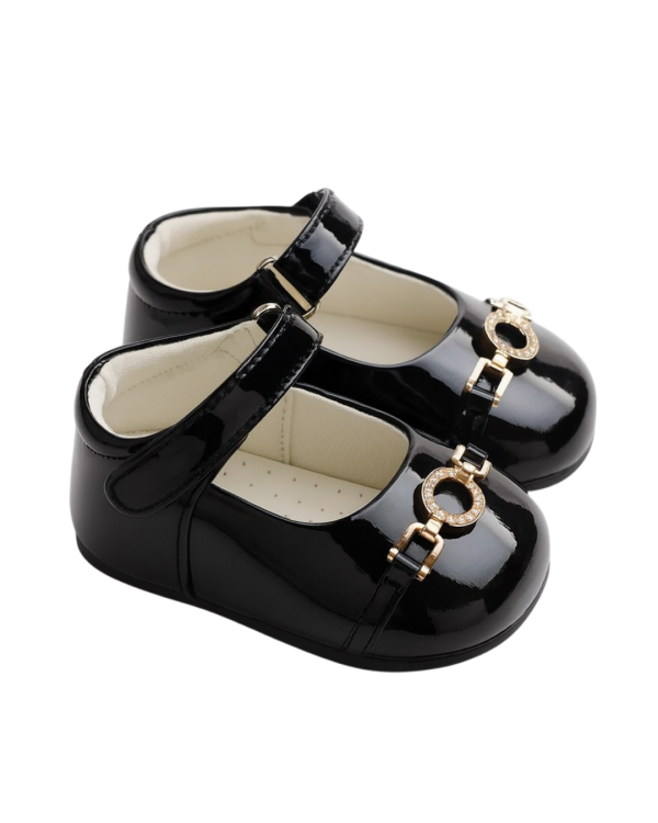 These beautiful buckle baby shoes come with a velcro fastening and are made of the highest quality and really sparkle to life when worn. The buckle features a charming and elegant diamond design. These shoes are ideal for weddings, christening, or any other special occasion.