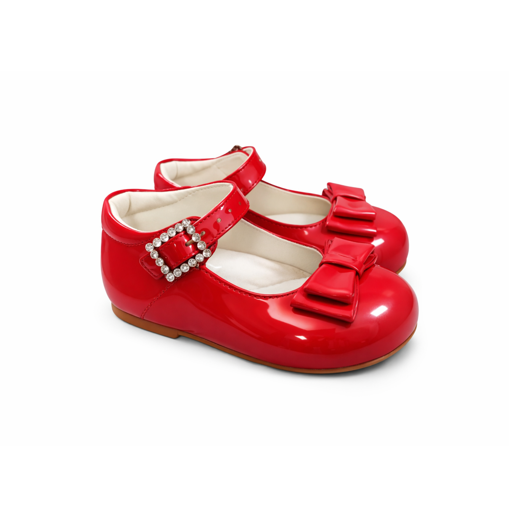 These beautiful bow baby shoes come with buckle fastening and are made of the highest quality and really sparkle to life when worn. The buckle features a charming and elegant diamond design. These shoes are Ideal for weddings, christening, or any other special occasion.