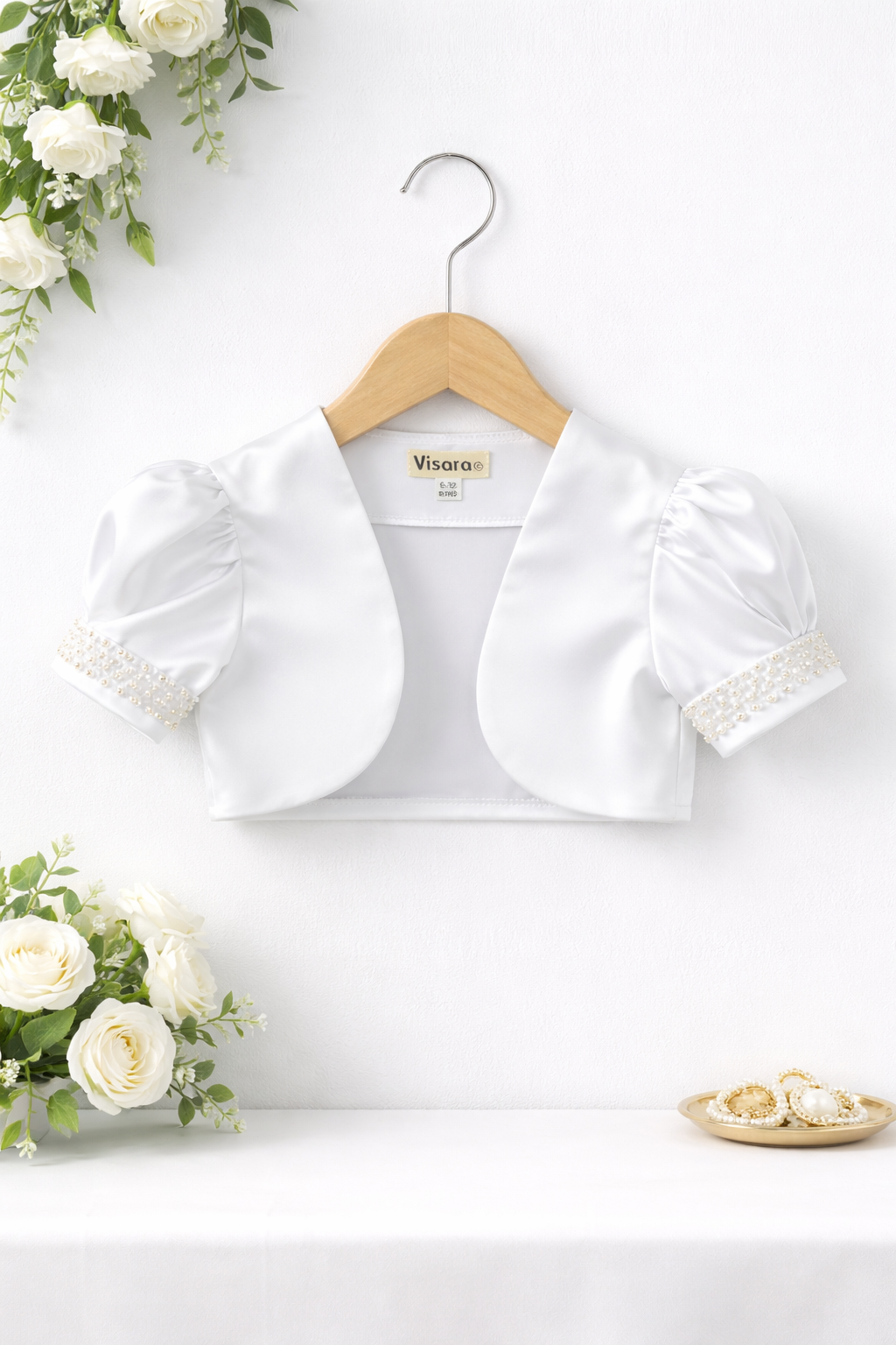 Girls Beaded Sleeve Bolero in White