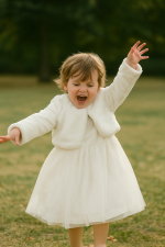This ivory netted dress comes with ruffled detailing. has a double lining and a zip fastening.